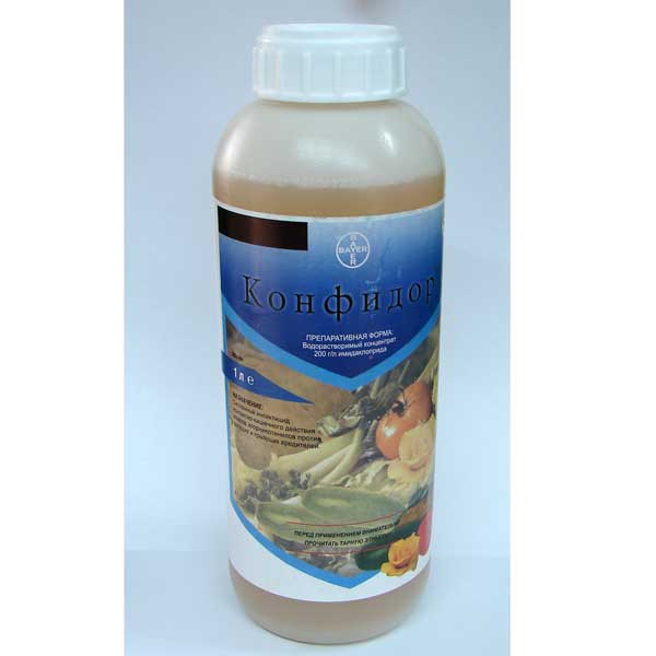 Конфідор - високоефективний малотоксичний інсектицид системної та контактної дії проти широкого спектру шкідників, дуже тривалого захисту. Перевага препарату полягає в його новому механізмі на комах, проти якого відсутня стійкість. Діюча речовина: імідаклорид, 200 г/л. Системний інсектицид контактно-кишкової дії для застосування проти: колорадського жука та попелиці на картоплі, попелиць, трипсів та білокрилки на огірках та томатах, попелиці і трипси на троянди. Спосіб та час застосування: При обробці ґрунту рекомендується профілактичне застосування препарату. Оптимальний розподіл та висока якість обробки досягається при вологому ґрунті. Обробку рослин слід розпочинати до появи інфекції, коли погодні умови сприяють її розвитку, або, у крайньому випадку, за перших ознак захворювання. Витрата препарату (обприскування): 1 мл на 1 сотку (100 кв.м). Для досягнення необхідної ефективності потрібно 1 мл препарату влити