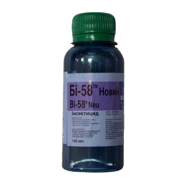 Концентрат емульсії контактної та системної дії призначений для боротьби з шкідниками, що смокчуть і гризуть. БІ-58 призначений для захисту таких культур як яблуня, груша, слива, смородина, малина, виноград, овочі, квіткові культури, декоративні чагарники. БІ-58 застосовується від наступних шкідників: щитівки несправжні, щитівки, кліщі, листовійки, попелиця, мідяниця, плодожерка, моль, листогризучі, гусениці, жуки, пильщики, червець, цикадки, галиці, клопи, трипси та ін.