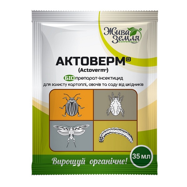 Призначення: для захисту рослин від павутинного кліща, колорадського жука, попелиць, трипсів, біланів, совок, плодожерок, молі, листовійок, п’ядунів тощо на сільськогосподарських, плодово-ягідних, декоративних культурах фруктових деревах та квітах відкритого і закритого ґрунту.
