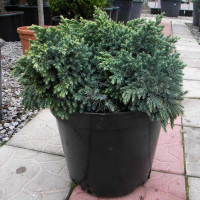 Juniperus squamata "Blue Star" - карликовий, вічнозелений чагарник сріблясто-блакитного кольору з лускатою голкоподібною хвоєю. Крона у чагарнику геометрично майже напівкругла, широка і щільна, росте дуже повільно, і за десять років набирає в зростанні не більше 0,4-0,5 м при такому ж діаметрі. Дуже любить сонячні місця. Цей сорт добре переносить морози, вітри, посухи. Рекомендується для групових та одиночних посадок, в альпінаріях, у невеликих садах, на кам'янистих гірках, ефектно виглядає біля гробниць на цвинтарях. Чудово підходить для невеликих композицій, біля доріжок, вздовж тротуарів та паркових алей, для контейнерного вирощування. Висота рослини – 30-50 см.