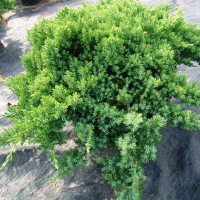 Ялівець Нана (Nana) - лежачий хвойний чагарник з жорсткою кроною, що стелиться. Його гілки мають чітку горизонтальну спрямованість, дуже щільно прилягають одна до одної. Форма: Розгалужена, горизонтальна. Розмір: Висота гілок дорослого чагарника - 40 сантиметрів, діаметр - 150. Ялівець Nana дуже повільно росте, таких габаритів досягає лише у віці 10 років і більше. Хвоя: Колюча, жорстка. Голки ростуть симетрично, дуже близько одна до одної. Коренева система: Потужна, дуже глибока. Рекомендації щодо посадки: Ялівець Нана категорично не виносить тінь. Навіть у півтіні він скидає голки. Тому найкраще підійде місце на ділянці з максимальною освітленістю - на височинах, південній стороні схилу. Розмір лунки на 0,5 метра має перевищувати ширину та глибину кореневої системи. Ґрунт перед посадкою чагарника, змішується з торфом та дерном. Важливо забезпечити хороший дренаж. Догляд: Поливати ялівець потрібно при необхідності, але не частіше двох разів на місяць. Добрива в період активного вносяться двічі на 30 днів. Рекомендується віддавати перевагу органічним сумішам або спеціальним добавкам для хвойних. Особливості: Нана - чудовий ароматизатор двору. Навіть перебуваючи в деякій віддаленості від будинку, цей чагарник облагородить житло м'яким ялівцевим запахом і фітонцидами. Використання в дизайні: Незвичайна форма крони дозволяє застосовувати ялівець Нана для формування газонів та прикраси кам'янистих схилів. Ландшафтні дизайнери також часто використовують цей чагарник для створення оригінальних композицій із скульптур, розаріїв, квіткових клумб або хвойників. Висота рослини: 30-40 см