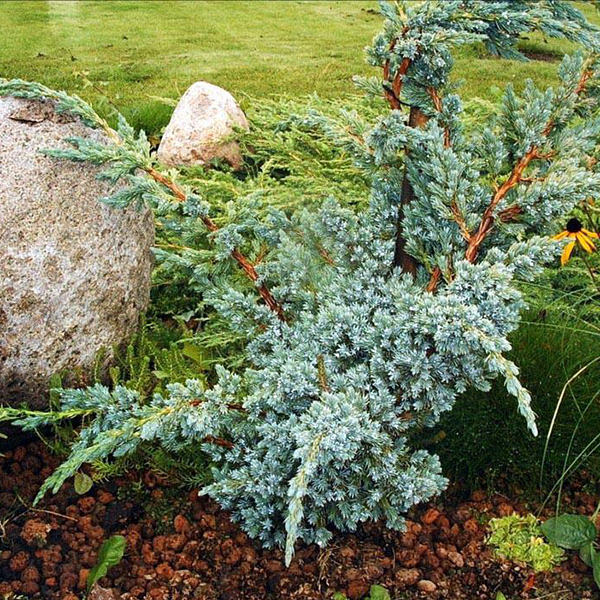 Хвоя: густо зростаюча, колюча, має яскраво виражений синьо-сріблястий відтінок, навіть у тіні. У молодих хвойників колір яскравіший, але з віком відтінок стає тьмянішим. Місце розташування і грунт: до грунтів невибагливий, добре росте будь-яких землях, як кислих, і лужних, стійкий до посухи. Як і решта рослин відмінно відгукується на внесення органо-мінеральних добрив. Віддає перевагу відкритим, сонячним ділянкам. Посадивши ялівець у тіні, він втратить свою привабливість, оскільки хвоя стане блідою і втратить густоту.