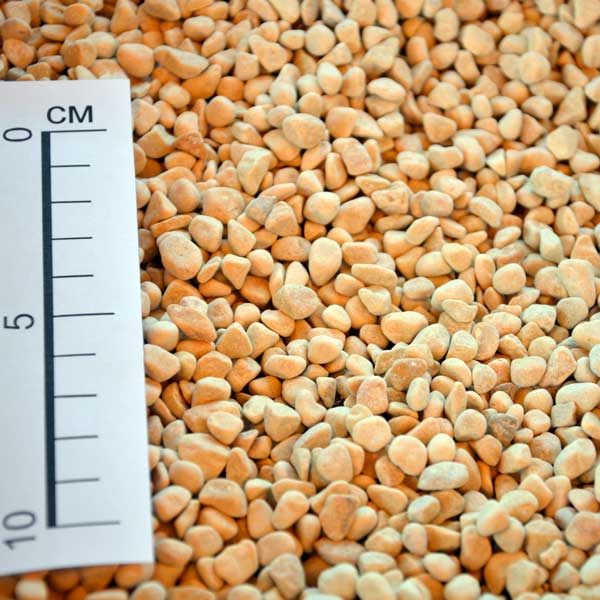 Область застосування: Декоративне облаштування садів, у т.ч. східних, доріжок та клумб, терас. Окантовка навколо будинків, дерев та кущів. Оздоблення басейнів, штучних ставків, фонтанів. Декорування вазонів з квітами. Прикраси могил. Колір жовтий. Розмір: 5-8 мм.