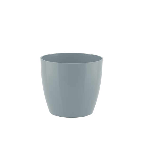 Кашпо San Remo створене з високоякісного міцного поліпропілену та має гладку глянсову поверхню. Колір: сіро-блакитний Висота: 14,5 см Діаметр: 16 см