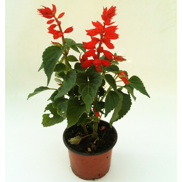 Напівчагарник або багаторічна трав'яниста рослина, що вирощується як однорічна, 20-80 см заввишки. Пагони чотиригранні, світло-зелені. Кущі зворотнояйцеподібної форми, густо облистнені, компактні. Листя цілісні, розташовані супротивно, яйцеподібні, загострені, на черешках, темно-зелені з верхнього боку і світло-зелені з нижньої. Квітки в мутовках по 2-6, великі, неправильні, з подвійною оцвітиною, зібрані в кистевидні суцвіття 14-25 см завдовжки. Віночок та чашечка вогненно-червоні, рідше білі, рожеві, фіолетові. Цвіте рясно з червня до перших осінніх заморозків. Плодоносить. Плоди сухі, що розпадаються на 4 горішки. У 1 г 350-400 насінин, що зберігають схожість до 5 років. У культурі вони вимогливі до тепла, родючості та вологості ґрунту. Рясно цвітуть лише на відкритих. сонячних місцях. У спеку необхідний полив. Ушкоджуються навіть легкими заморозками. Зниження температури до мінус 5 ° С призводить до загибелі рослин.