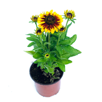 Рудбекія (Rudbeckia) - невибаглива красивоквітуча рослина. Належить до роду трав'янистих однорічників, дворічних і багаторічників сімейства Астрові. Суцвіття рудбекії схожі на суцвіття ромашки, проте рудбекія сильно відрізняється розміром та забарвленням квіток. Квітки у рудбекії яскраві, великі, до 10-15 см у діаметрі, а з забарвлень переважають яскраві жовті, червоні та оранжеві відтінки. Location: Світлолюбна, воліє сонячне місце, але росте і в півтіні. До ґрунтів не вимоглива. Росте на будь-якому садовому грунті, але пишніше цвіте на родючому, пухкому. Використання: Рослини чудово виглядають у садових грядках і луках. Завжди яскравий акцент у квітнику з високими рослинами, хороші навіть між трояндами, півоніями. Прекрасно виглядають і в одиночній посадці.
