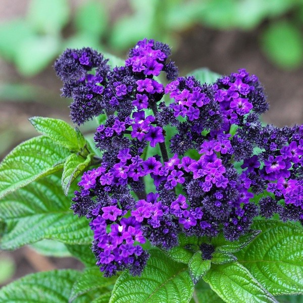 Листя у всіх видів геліотропу зворотно-яйцеподібні, чергові, темно-зеленого кольору, опушені, хвилясті або зморшкуваті, на коротких черешках. Дрібні запашні квітки фіолетового або темно-синього кольору, зібрані в густі щитки, містять цінну ефірну олію, за рахунок якої аромат геліотропу, як і раніше, популярний у парфумерних композиціях. Кожен квітконос цвіте близько місяця. Плід – ценобій, що розпадається при дозріванні на чотири частини – ереми, кожна з яких містить дрібне насіння геліотропу. Геліотроп у домашніх умовах може рости кілька років, але в садовій культурі в наших кліматичних умовах геліотроп вирощують як однорічник. Місцерозташування: Для посадки рослин вибирають сонячне місце з родючим, пухким, водопроникним грунтом, багатим на гумус. Догляд: Полив геліотропу здійснюють при необхідності, в посушливе літо поливати доводиться частіше. Після поливу необхідно обережно розпушувати ґрунт між кущами та видаляти бур'яни. Якщо ви замульчували ґрунт на ділянці, то і розпушувати, і полоняти бур'яни вам доведеться набагато рідше. Як, до речі, і поливати. Раз на два тижні підгодовуйте геліотроп повним комплексним добривом аж до початку активного цвітіння.