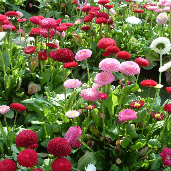 Маргаритка - рід трав'янистих багаторічних квіткових рослин із сімейства Астрові. Назва роду походить від грецького слова "bellus" - прекрасний. Дрібні трав'янисті рослини з коротким кореневищем. Листя лопатчасте, тупі, городчасте прикореневе, наземне стебло безлисте, що розвиває одну головку. На голому, конічному квітколожі розвиваються крайові жіночі язичкові квітки, білі або рожеві, і серединні трубчасті, двостатеві, жовті. Плід - сплюснена сім'янка. Місце розташування: віддають перевагу відкритим сонячним місцям, але можуть зростати і при частковому затінку, особливо в спекотний час. Вирізняються високою зимостійкістю. Грунт: невибагливі, ростуть на будь-якому, добре дренованому грунті, але цвітуть рясніше на легких суглинках, багатих на гумус. Догляд: вимагають регулярного поливу, при нестачі вологи суцвіття дрібнішають і втрачають махровість. Культура дуже чуйна на ранньовесняне внесення рідких підживлень. Для обмеження самосіву і продовження цвітіння обов'язково потрібно відщипувати кошики, що відцвітають.
