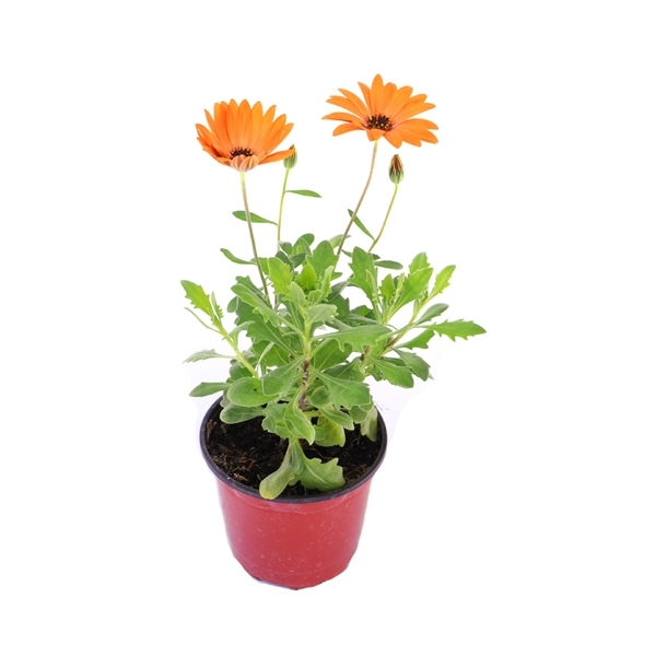 Остеоспермум чудова багаторічна квітка прийшла до нас з Південної Африки і успішно культивується у відкритому ґрунті наших широт. Належить він до сім'ї айстрових. Рід включається понад 60-ти видів. Кущі рослини гіллясті, на них утворюється велика кількість квіткових кошиків, що нагадують ромашки, тому остеоспермум і називають "капська ромашка". Стебла квітів високі - до 30 см. Суцвіття досягають 5 см. Забарвлення суцвіть буває білим, рожевим, помаранчевим і пурпуровим. Центр квітки в основний синій, але в деяких сортах буває оранжевим, білим, глибоко рожевим. Листя яскраво зелене, щільне. Квітка невибаглива і цвіте практично все літо. Місцерозташування та грунт: Для його посадки підійде розпушена ділянка, що добре освітлюється сонцем. У тіні рослина теж зросте, але цвітіння буде незначним. Бажано удобрити землю перегноєм, піском та дерновою землею. Однакова кількість всіх компонентів. Ця квітка чудово переносить і спеку і холод, але не надмірні. Догляд: Якщо вирощуєте рослину в горщику, то регулярно її поливайте, але не перестарайтеся. Дуже добре, якщо ви зможете щотижня удобрювати квітку. При виконанні цієї умови його цвітіння не забариться. Прищипування остеоспермуму потрібне для того, щоб кущ був густішим. Цю процедуру потрібно зробити хоча б кілька разів. І ще важливим моментом є видалення зів'ялих та висохлих суцвіть.
