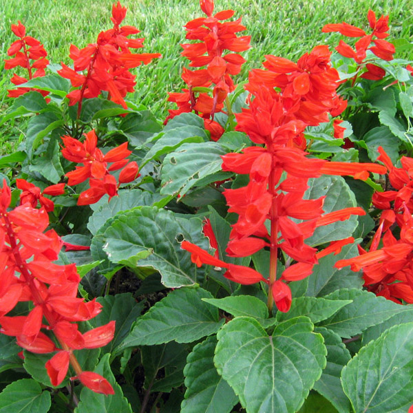 Напівчагарник або багаторічна трав'яниста рослина, що вирощується як однорічна, 20-80 см заввишки. Пагони чотиригранні, світло-зелені. Кущі зворотнояйцеподібної форми, густо облистнені, компактні. Листя цілісні, розташовані супротивно, яйцеподібні, загострені, на черешках, темно-зелені з верхнього боку і світло-зелені з нижньої. Квітки в мутовках по 2-6, великі, неправильні, з подвійною оцвітиною, зібрані в кистевидні суцвіття 14-25 см завдовжки. Віночок та чашечка вогненно-червоні, рідше білі, рожеві, фіолетові. Цвіте рясно з червня до перших осінніх заморозків. Плодоносить. Плоди сухі, що розпадаються на 4 горішки. У 1 г 350-400 насінин, що зберігають схожість до 5 років. У культурі вони вимогливі до тепла, родючості та вологості ґрунту. Рясно цвітуть лише на відкритих. сонячних місцях. У спеку необхідний полив. Ушкоджуються навіть легкими заморозками. Зниження температури до мінус 5 ° С призводить до загибелі рослин.
