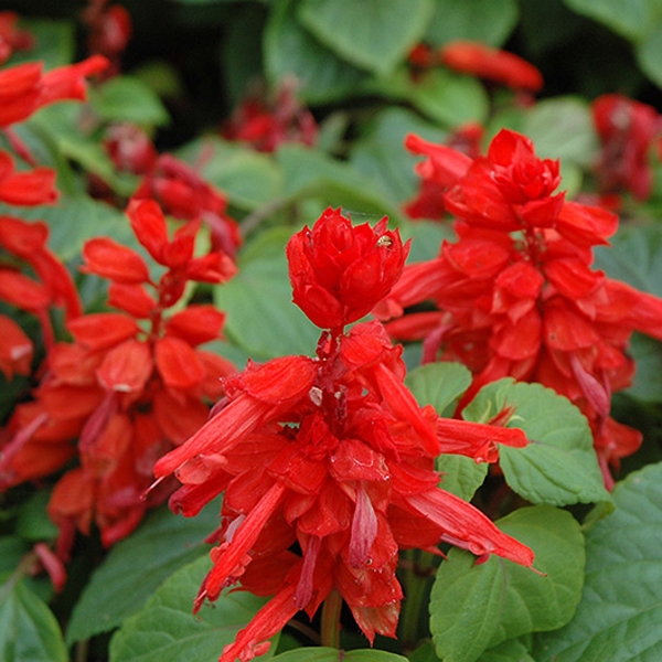 Напівчагарник або багаторічна трав'яниста рослина, що вирощується як однорічна, 20-80 см заввишки. Пагони чотиригранні, світло-зелені. Кущі зворотнояйцеподібної форми, густо облистнені, компактні. Листя цілісні, розташовані супротивно, яйцеподібні, загострені, на черешках, темно-зелені з верхнього боку і світло-зелені з нижньої. Квітки в мутовках по 2-6, великі, неправильні, з подвійною оцвітиною, зібрані в кистевидні суцвіття 14-25 см завдовжки. Віночок та чашечка вогненно-червоні, рідше білі, рожеві, фіолетові. Цвіте рясно з червня до перших осінніх заморозків. Плодоносить. Плоди сухі, що розпадаються на 4 горішки. У 1 г 350-400 насінин, що зберігають схожість до 5 років. У культурі вони вимогливі до тепла, родючості та вологості ґрунту. Рясно цвітуть лише на відкритих. сонячних місцях. У спеку необхідний полив. Ушкоджуються навіть легкими заморозками. Зниження температури до мінус 5 ° С призводить до загибелі рослин.