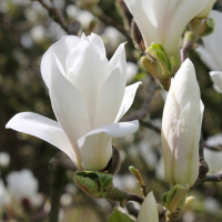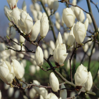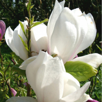 Магнолія суланжу Альба Суперба - вишуканий листопадний чагарник із густою та компактною формою крони. Казкове цвітіння ароматних білих квітів у формі тюльпана величезного розміру, що розкриваються на оголених гілочках ще до появи листя і видають приємний аромат - головна перевага Магнолії сорту Альба Суперба. Форма: Вертикальний чагарник або дерево з розлогою формою крони. Розмір: Висота дорослої рослини близько 4-5 м. Швидкість росту: Повільнозростаюча в молодості, але з кожним роком розмір приросту зростає (20-40 см за рік). Листя: Світло-зелені, великі. Восени забарвлюються у жовтий колір. З'являються на гілках після цвітіння. Квітки: Великі тюльпаноподібні, білого кольору, біля основи трохи рожеві, з приємним ніжним ароматом. Час цвітіння: Квітень - травень, цвіте перед розпусканням листя. Місцерозташування та грунт: Сонячні, злегка затінені місця, добре захищені від вітру. Віддає перевагу добре дренованому, вологому грунту, пухким і супіщаним садовим грунтам з кислою реакцією. Рекомендації з посадки: Для відмінного зростання та розвитку в неглибоку посадкову яму потрібно додати добру частку піску та листя. Місце має бути захищеним від протягів та сильного вітру. Для успішного вкорінення краще вибрати південну сторону, а посадку робити навесні. Догляд: Крім багатого і частого поливу цій рослині нічого не потрібно. Мінеральні або комплексні добрива можна періодично використовувати для зміцнення, проте і без підживлення кущ добре цвістиме і розвиватиметься. Молоді саджанці на зиму покриваються подвійним шаром нетканого матеріалу. Дорослі дерева нормально переносять зиму самостійно. Особливості: У жодному разі землю навколо стовбура не можна перекопувати або утоптувати - це дуже шкодить корінням. Прикореневу зону важливо мульчувати щільним шаром листя. Враховуючи те, що крона може досягати 3 - 4 метрів завширшки, деревце повинне рости там, де йому буде достатньо місця. Використання в дизайні: Для домашніх садів і палісадників просто чудовий варіант. Відмінно виглядає як у квітковій клумбі, так і серед фруктових дерев.
