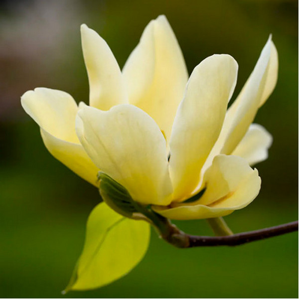 опис квітки магнолії: бутони численні, великі, келихоподібні, пелюстки пофарбовані в привабливий кремово-жовтий відтінок, ароматні квіти,