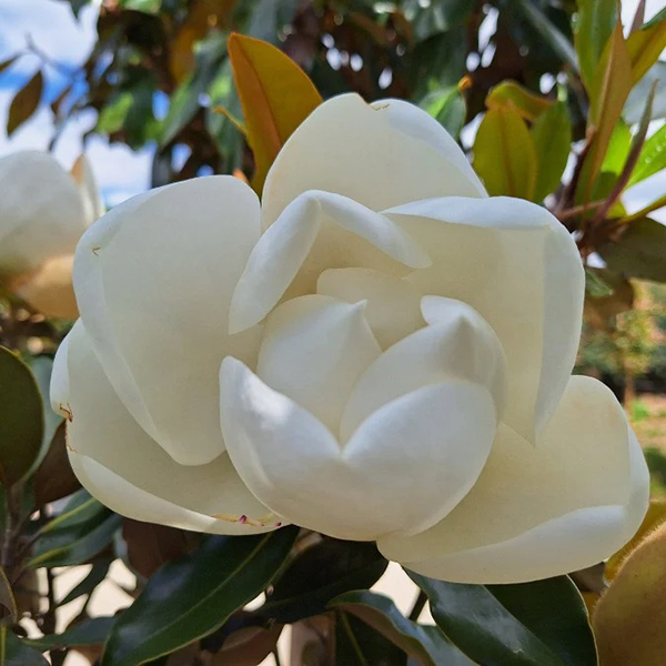 Magnolia grandiflora Little Gem - компактний сорт магнолії вічнозеленої, із щільною вузькоколоноподібною кроною. Квітки діаметром 20 см з легким ароматом, з'являються на кінчиках товстих твердих стебел з кінця весни, цвітуть все літо і розпускаються до останніх теплих сонячних днів.