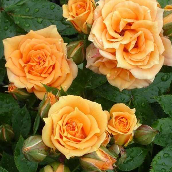 Клементина - це бордюрний сорт, що належить до групи мініатюрних троянд. Кущ виростає не більше, ніж на півметра у висоту, і посипаний маленькими густомахровими квіточками діаметром 4-5 см. Ніжні бутони чашоподібної форми зібрані у великі суцвіття і формуються по 5-10 штук на стеблі. Завдяки своєму теплому абрикосово-помаранчевому з персиковими нотками забарвленню вони впадають у вічі. Квітки цього сорту ароматні, проте їхній запах не надто інтенсивний. Завширшки чагарник зазвичай не сильно розростається: мінімум на 40, максимум - на 60 см. Він прямостоячий і сильнорослий. Пагони рослини мають яскраво виражену тенденцію до розгалуження, але досить міцні і вимагають опори. Компактний кущ покриває темно-зелене листя з глянсовою поверхнею, що створює контрастне тло для ніжних квіток. Квітне Clementine практично безперервно протягом усього сезону. Чудові бутони з'являються на культурі завжди у великій кількості. Саджанець упакований у пакет із торфом