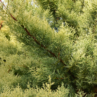 Кіпаріс аризонський Фастігіата ауреа - хвойне дерево заввишки до 15 м і більше. Крона широко кеглеподібна. Кора червоно-коричнева, злазить довгими смугами. Гілки ростуть горизонтально, хвоя блакитно-зелена або срібляста, складається з лусочок завдовжки 2 мм. Шишки темно-червоно-коричневі, на зрілість блакитні. Місцерозташування і грунт: Кіпаріс аризонський добре пристосовується до різного клімату, переносить більшу частину садових грунтів, віддає перевагу пухкому грунту з хорошим дренажем. Слід уникати перезволоження ґрунту, між поливами ґрунт повинен підсихати. Світлолюбний. При вирощуванні у відкритому ґрунті молоді рослини у перші два-три роки життя необхідно вкривати на зиму. Переносить обрізку, навіть досить часто. Використання: Швидке зростання, ошатна крона, легко піддається стрижці, витривалість і невибагливість роблять аризонський кипарис прекрасним деревом для ландшафтного дизайну. Висота рослини: 175-200 см
