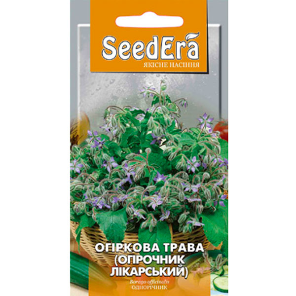 Насіння Огіркової трави Seedera Огіркова трава - це овочева та лікарська рослина. За смаком та запахом воно змагається з огірком. Трав'янистий однорічник. Кущ огіркової трави виглядає так весело та життєрадісно, так у ньому багато буйної сили, що саме вирощування огіркової трави прописували раніше як засіб від меланхолії. Зростає дуже швидко. Безперервно цвіте протягом усього літа. Висота дорослого куща: 50-75 сантиметрів.