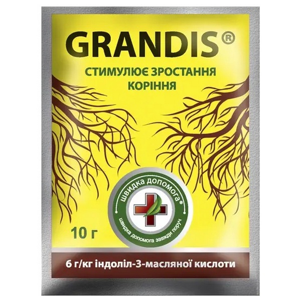 Grandis - препарат, призначений для коренеутворення у рослин. Створений на основі індоліл-3-масляної кислоти - біологічної речовини, яка стимулює формування кореневої тканини. Використовується Grandis для припудрювання свіжих зрізів у живців плодових, ягідних, квіткових та овочевих культур, поливу насіння.