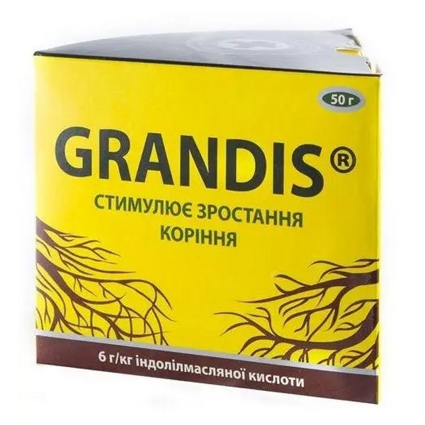 Grandis - препарат, призначений для коренеутворення у рослин. Створений на основі індоліл-3-масляної кислоти - біологічної речовини, яка стимулює формування кореневої тканини. Використовується Grandis для припудрювання свіжих зрізів у живців плодових, ягідних, квіткових та овочевих культур, поливу насіння.