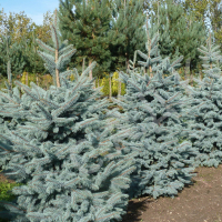 Ялина блакитна - оригінальне та красиве хвойне дерево, висотою 25-30 см, вічнозелене з гарним блакитним відливом. Крона конусоподібна. Діаметр ствола досягає до 1,5 м. Хвоя гостра, колір від сизо-зеленого до яскраво-блакитного. Довжина голок 2-3 см. Ялина блакитна – дерево довгожитель. Тривалість життя становить від 400 до 600 років. Рекомендації з посадки: Як ідеальне місце підійде височина в південній або південно-східній частині двору. Це дерево віддає перевагу сонячному світлу у великих кількостях, від його нестачі ялина може скидати хвою. Глибина посадкової лунки має перевищувати розміри кореневої системи на 50 сантиметрів. Лунка готується класично: ґрунт у ямці з'єднується з торфом або дреном. Догляд: Кілька разів на рік під корінь вносяться мінеральні добрива. За потреби закислюється грунт. Для захисту хвої від паразитів та захворювань рекомендується 1 раз на сезон обробляти її спеціальними засобами. Полив регулярний, помірний. Щовесни проводиться санітарне обрізання гілок. Особливості: Дерево дуже велике, тому відразу потрібно підібрати місце на ділянці, вільне від групових насаджень. Це чудовий фітонцид та відмінний декор будь-якого двору. Використання в дизайні: У більшості випадків блакитна ялина висаджується одинично для прикраси порожньої частини ділянки. Якщо дозволяє площа, то із групових насаджень цього сорту вийде чудовий хвойник. Висота рослини: 120-130 см