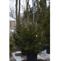 Ялина звичайна - один із найпоширеніших мешканців природних лісів та штучних насаджень. Основною причиною популярності цього дерева є надзвичайна стійкість. Цій ялині не страшні сильні морози, різкі перепади температури, тінь. Форма: Пірамідальна, симетрична. Багато залежить від освітленості ділянки, де росте дерево. Хвоя тягнеться до сонця і може бути деформована у напрямку джерела променів. Розмір: Це велике хвойне дерево. Генетичний вік звичайної ялинки може досягати кількох століть, але масштабно рости дерево припиняється після 30 років. Доросла ялина у висоту досягає 40 метрів, а в диметрі крона може бути 12. Хвоя: Жорстка і колюча. Чим старше дерево – тим жорсткіші голки. Колір хвої зелений. Молоді пагони помітні завдяки своєму яскравому салатовому забарвленню. Корнева система: Дуже глибока на глинистих ґрунтах і поверхнева на берегах річок. Рекомендації з посадки: Важливо відразу вибрати місце на ділянці, яке підходить для такого великого дерева. Пересаджувати саджанець, що укорінився, не рекомендується. Лунка вдвічі перевищує розмір кореневої системи. Для підготовки посадкової ями грунт у ній поєднується з торфом і дерном. Фахівці з хвойних рослин рекомендують також додавати пісок та органомінеральні добрива. Догляд: Ялина звичайна не вимагає особливого відношення. Вона зовсім не вибаглива. Поливати дерево потрібно в міру висихання ґрунту, регулярно потрібно розпушувати ґрунт. Кілька разів на сезон вносяться добрива для хвойних. Особливості: Це дерево очищає повітря, допомагає відновити нервову систему, сприяє звільненню від хронічних захворювань верхніх дихальних шляхів. Використання в дизайні: Застосовується в одиночних та групових композиціях. Рідше її використовують як скульптури або живоплоти. Країна вирощування:Україна. Висота рослини: 80 см