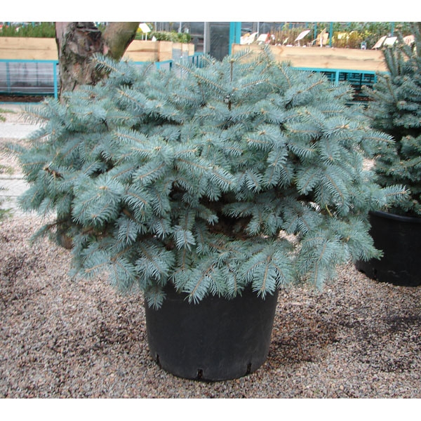 Ялина колюча Глаука Глобоза (Glauca Globosa) - одне з найвідоміших хвойних дерев. Головною причиною популярності є незвичайна для цього сімейства форма крони. Широкий конус підкреслює прямий стовбур, який практично не спотворюється зі зростанням рослини. Форма: конічна, широка. Крона розлога, гілки розташовані правильними ярусами, ростуть симетрично. Чим старше стає дерево – тим форма стає більш пірамідальною. Після 15 років Глаука Глобоза нагадує досконалу зелену піраміду. Розмір: Це карликова ялина. Розміри дорослого (30 років) дерева не перевищують 2 метрів у висоті та 1,5 у діаметрі. Хвоя: Густа, колюча. Ялина Глобоза також відома, як сиза. Її хвоя відливає сріблом, в холодну пору року вона набуває блакитнуватого відтінку. Голки тверді, міцні, густі. Зростають дуже щільно. Коренева система: Розвинена, глибока. Рекомендації щодо посадки: Найкраще приживаються акліматизовані дерева. Якщо купити саджанці ялинки Глаука Глобоза в інтернет-магазині Ваш Сад, то можна бути впевненим у тому, що вони приживуться. Клімат України мінливий, молоді дерева потребують захисту від різких перепадів температури, великої кількості світла та відносної сухості ґрунту. Найкраще місце для посадки – височина. Лунка має відповідати розміру вазону, в якому знаходився паросток. Догляд: У перші 5 років після посадки саджанці потрібно вкривати від вітру та снігу. Перед початком руху соку обов'язково проводиться санітарна обрізка. Удобрюються хвойні кілька разів на сезон спеціальними пролонгованими добавками. Полив проводиться при необхідності не менше 10 літрів на саджанець. Особливості: Це красиве дерево, яке має декоративні та лікувальні властивості. Хвойні рослини мають фітонцидні властивості: очищають повітря, насичують його ефірними маслами, забезпечують профілактику захворювань дихальних шляхів. Використання в дизайні: Правильна конусна форма допоможе прикрасити ландшафт ділянки. З Глауки Глобози виходять цікаві зелені скульптури. Дерева використовують у групових та одиночних композиціях, для прикраси схилів та альпійських гірок.