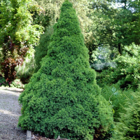 Ялина канадська Коніка - сиза красуня, що відрізняється підвищеною морозостійкістю. Це карликове дерево, у молодому віці використовують для прикраси терас, балконів та зимових садів. У більш зрілому - після 10 років, саджанці висаджують у відкритий ґрунт. Форма: Правильна конусна. Гілки розташовані симетричними ярусами, їхня довжина зменшується до верхівки. Розмір: Карликовий. Висота ялинки Коніка до 10 років рідко перевищує 1 метр. У природних умовах дерево виростає до 3 метрів (іноді вище). Діаметр крони до 1,5 метра. Хвоя: Дуже м'яка, пухнаста. Голки еластичні, загострені до кінця, але приємні на дотик. Хвоя елегантного зеленого кольору. Якщо дерево росте в умовах затінення, то голки набувають жовтого відтінку. Корнева система: Розвинена, неглибока. Навіть дерева, що вкорінилися, можна пересаджувати до віку - 10 років. Рекомендації з посадки: В умовах закритого ґрунту, для посадки Коніки потрібно підготувати вазон, що в 2 рази перевищує розмір кореневої системи. У вазон додається субстрат для хвойних, 1 частина торфу, дерну та пісок. Суміш кожні півроку оновлюється. 1 раз на 3 роки саджанець пересідає в нову ємність. При висадці у відкритий ґрунт для Коніки готується посадкова лунка з розміром, що в 1,5 разів перевищує кореневу систему. Догляд: Для захисту ніжної хвої забезпечуються регулярні обприскування інстекцидами та фунгіцидами. Щосезону кореневим способом вносяться мінеральні добрива пролонгованого типу дії. Полив має бути помірним, у міру висихання субстрату. Особливості: Це невибагливе дерево з добрими показниками витривалості. Ялина відмінно переносить затінення та перепади температури, але при висадці у відкритий ґрунт необхідна акліматизація. Саджанці мають фітонцидні якості. Використання в дизайні: Карликові ялинки в горщиках часто прикрашають новорічні столи, кімнатні різдвяні композиції та дворовий ландшафт. Професійні дизайнери доповнюють Конікою альпійські гірки, розарії, квіткові клумби. Рідше – живі огорожі.