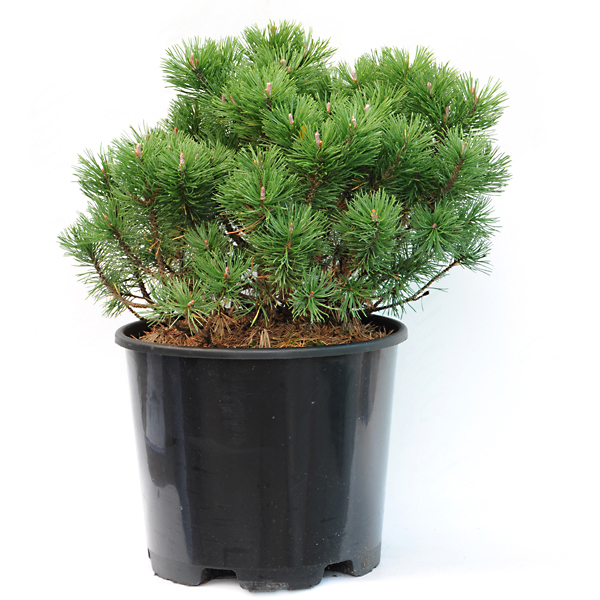 Сосна гірська Мопс (Pinus mugo Mops) - невелика хвойна кустарна рослина. Є одним із декоративних підвидів сосни гірської. Завдяки своїй адаптивності до будь-яких умов проживання абсолютно легка у догляді, а її практичний вигляд добре поєднується з квітами або листяними деревами в будь-якому саду. Форма: Має форму чіткої кулі, з віком трохи сплющується, набуває подушкуватого вигляду. Крона дуже щільна, густа, розростається рівномірно, що допомагає рослині зберегти форму протягом усього життя. Розмір: Доросла рослина досягає у висоту не більше, ніж 2 метри і стільки ж завширшки. Зростає не швидко на рік може зрости на 10 см і збільшитися завширшки на 15 см. Хвоя: Утворює на одній гілці по два пучки, які не опадають, як правило, до трьох років. Хвоїнки щільні, жорсткі, не сильно загострені на кінцях. Колір має зелений, темно-зелений. Коренева система: Широка, потужна, глибока, добре розвинена. Довгі кореневища розростаються в глибину більше, ніж ушир, це забезпечує дереву стійкість від вітру та постачання природних корисних мінералів. Рекомендації щодо посадки: Молоді дерева пересідають просто, швидко приживаються. Головне для вкорінення дотримуватись дистанції між деревами в 1,5 метра мінімум. Посадкова яма має бути не менше 0,8 метрів із вмістом піску та торфу. На зиму молоді дерева краще не залишати не накритими. Догляд: У перші роки життя боїться холоду, але з віком морозостійке. Не вимагає рясного поливу, довго зберігає вологу завдяки хвойній подушці. Як добрива підходить нітроамофоска або перегній. Крона стане густішою, якщо її обрізати. Особливості: Не страждає ні від снігу ні від сонячних променів, вологостійка, морозостійка, має аромат хвої, компактна - всі ці якості роблять цей вид сосни неймовірно практичним мешканцем будь-якого саду. Може приймати будь-яку форму способом стрижки. Використання в дизайні: Найчастіше використовується як садовий бонсай, дивовижно виглядає на відкритій місцевості, японських садах біля штучних ставків. Країна вирощування: Україна.