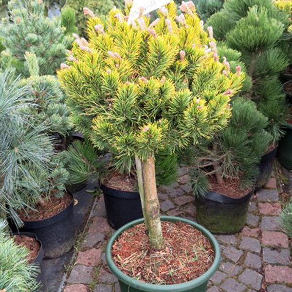 Сосна гірська Мугус - вічнозелене, хвойне кулясте дерево. Пагони розкинуті низько над землею, що стелиться. Форма крони: Широкояйцевидна. Повільно зростаюча. У 30 років досягає висоти 1 м, при діаметрі крони 2 м. Щорічний приріст 15 см заввишки і 10 см завширшки. Хвоя: Хвоя голчаста, жорстка, гостра, темно-зелена, довжиною 5-8 см, розташована в пучках по 5 штук. Плоди: Шишки яйцеподібні довжиною 6-8 см, шириною 5 см, молоді-фіолетового кольору, зрілі-коричневого, насіння їстівне. Місцерозташування та грунт: Світлолюбна, виносить невелике затінення. До ґрунтів невибаглива. Росте на всіх видах ґрунтів: вологих, помірно сухих, сухих і навіть на бідних ґрунтах із низьким вмістом поживних речовин. Але погано переносить ущільнення та засолення. Добре переносить спеку та підвищену вологість. Морозостійка та вітростійка. Використання: Рекомендується для альпінаріїв, озеленення схилів, ярів. Ефектна як у групових, так і в одиночних посадках.