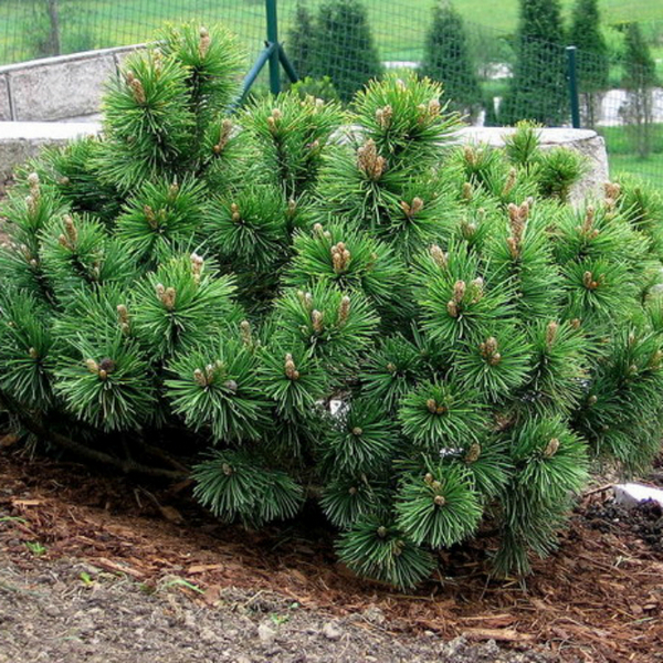 Розміри: до 3 м ширини і такої ж висоти. Річний приріст: заввишки 5 см, завширшки 12 см. Хвоя: Хвоїнки в пучках по 2, по довжині дуже різні, темно - зелені.