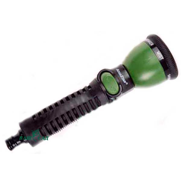 Пістолет поливальний пластмасовий для щадного та спрямованого поливу. Управляється однією рукою, струмінь води плавно регулюється. Пістолет має вмонтовану муфту (для з'єднання зі шлангом), ергономічну рукоятку та зручний фіксатор утримання струменя. При використанні пістолета рекомендується використовувати фільтр для очищення води.