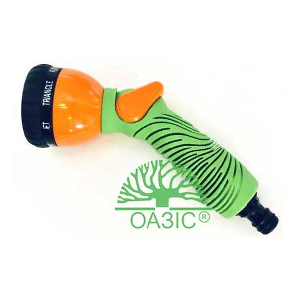 Пістолет поливальний металевий має 8 функцій розпилення: mist – туман, jet – струмінь, triangle-трикутник, flat – вузький, cone – конус, center – центр, shower – душ, soaker – злива.