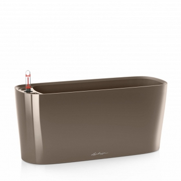 Вазон Lechuza Delta 10 сіро-коричневий, розмір 30х11х13 см складається із зовнішнього кашпо, знімного посадкового горщика з висувними ручками, субстрату Lechuza-PON та індикатора рівня води.