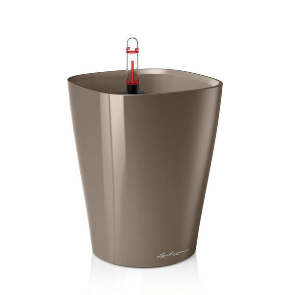 Вазон Lechuza Mini-Deltini складається із зовнішнього кашпо, знімного посадкового горщика, субстрату Lechuza-PON та індикатора рівня води. Підходить для маленьких рослин, таких як орхідеї, фіалки чи гербери.