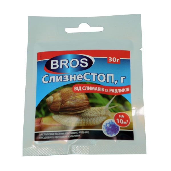 Засіб проти слимаків шлункової та контактної дії у вигляді гранульованої приманки, призначений для боротьби зі слимаками на деяких сільськогосподарських культурах та декоративних рослинах під прикриттям. Завдяки вмісту активної речовини та добавок, що приманюють, приваблює слимаків і ефективно їх знищує. Препарат є вологонепроникним, що приваблює равликів та слимаків, на тривалий термін забезпечуючи результативність та тривалий ефект.