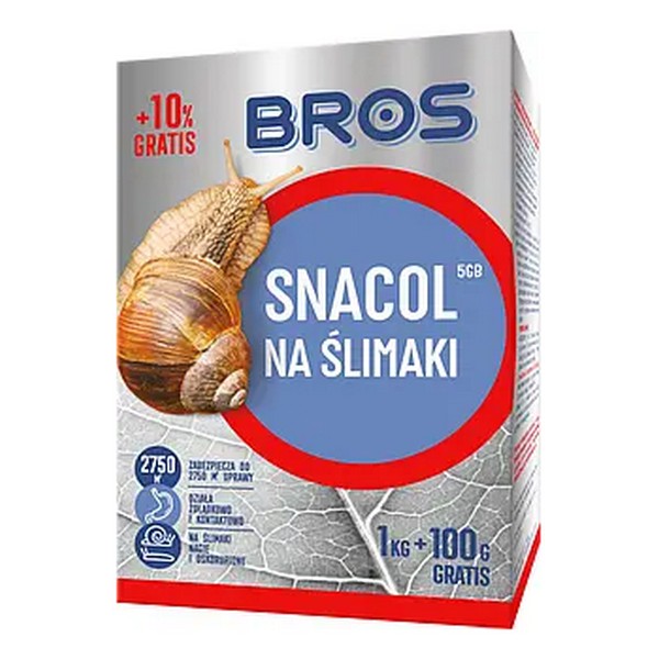 BROS Снаколь від слимаків - засіб проти слимаків, шлункової та контактної дії, у вигляді гранульованої приманки, призначений для боротьби зі слимаками на деяких сільськогосподарських культурах і декоративних рослинах. Ці гранули мають миттєву дію, стійкі до вологи та плісняви і зберігають свої властивості протягом тривалого часу.