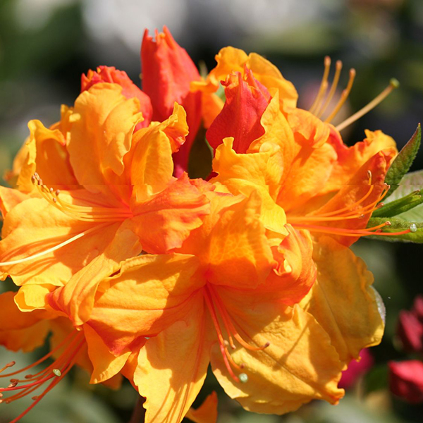 Листопадні азалії, вони ж рододендрони, добре ростуть і цвітуть у саду при правильній посадці та дбайливому догляді. Рододендрон листопадний - це напіввічнозелений або вічнозелений чагарник. На відміну від вічнозелених рододендронів, листопадні під час цвітіння повністю вкриті квітами, через які практично не видно листя. А восени листя вражає великою кількістю яскравих фарб, від жовтих до криваво-червоних. Помаранчеві, червоні та жовті кулі квіток рододендронів з'являються навесні, коли починають розпускатися нирки на деревах. З однієї квіткової бруньки утворюються 4-6 квіток лійкоподібної форми. У діаметрі кожна квітка становить 6-8 см. Цвітіння триває близько 3 тижнів, але і все літо рододендрони дуже декоративні, завдяки красивій зелені. А восени листя набуває червоних тонів, стаючи особливою прикрасою саду. Середня висота рододендрону становить 0,5-1 м, максимально можуть виростати на висоту до 10 м. Квітки мають форму воронки або дзвіночка, які зібрані великими та невеликими суцвіттями. Самі квіти досить великих розмірів, іноді в одному суцвітті може бути до 25 кольорів. Листя рододендрону мають невеликі розміри з глянсовою поверхнею. Місцерозташування та ґрунт: При посадці рододендронів дуже велике значення має ґрунт. Цим рослинам потрібна кисла, поживна грунт, торф'яно-вересковий. Глинисті важкі ґрунти для вирощування цих рослин у саду зовсім не підходять. Вода під рослиною не повинна застоюватись, тому при посадці рододендрону робиться дренаж зі стоком. У листопадних азалій коріння поверхневе і дрібне, а земля під ними повинна бути завжди вологою. Для кращого утримання вологи ґрунт навколо куща потрібно мульчувати торфом або листовим перегноєм. Вибір місця для посадки декоративної рослини також важливий. Дане сімейство вересових вимагає легку півтінь, яку можна забезпечити за рахунок сусідніх дерев. Догляд: Догляд за листопадним рододендроном досить простий. Він полягає в наступному: Періодична прополка та видалення бур'янів. Протягом жаркої пори року необхідно перевіряти ґрунт, стежити, щоб він не пересихав. Але не перестарайтеся, перелив пошкодить кущі. Водою кімнатної температури можна обприскувати листя та квіти. 3 рази на рік проводиться підживлення кущів. Вносити їх потрібно перед початком цвітіння. Звичайні добрива не підійдуть. Необхідне спеціальне швидкорозчинне добриво для рододендронів. Двічі на рік проводьте мульчування, підсипайте деревну кору або хвойний опад. Це захистить ґрунт від висихання та втрати поживних речовин. Зів'ялі суцвіття необхідно акуратно обламувати. Досить стійкі до хвороб та шкідників. Рододендрони листопадні вважаються зимостійкими декоративними рослинами, можуть переносити невеликі морози. На зиму гілки листопадного рододендрону пригинають до землі, але таким чином, щоб нирки із землею не торкалися. Також потрібно забезпечити рослині в період зимівлі умови, що перешкоджають застою холодної снігової води та утворенню льоду.