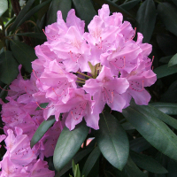 Рододендрон - вічнозелений, квітучий чагарник сімейства Верескових. Завдяки надзвичайно пишним оксамитовим квіткам, навіть наявність одного такого кущика, перетворить будь-який сад. Квіткова клумба з рододендронів буде виглядати повітряно і ніжно. Рододендрон катевбінський - швидкозростаючий та морозостійкий. Цвіте він на початку червня, воліє, як і всі інші представники сімейства вересових, добре дреновані кислі ґрунти, середньо-і слабоосвітлені ділянки, має підвищену зимостійкість. Крона: Вічнозелений, розлогий, сильногіллястий, напівкулястий чагарник Листя середні (7-8см), еліптичні, зверху - темно-зелені, знизу - сизуваті, шкірясті Цвітіння: Квітки лілові із зеленувато-жовтою плямою та помаранчевим кропом на верхньому пелюсті, великі (6-7см), без запаху, зібрані по 13-15 штук у компактні суцвіття. Цвіте на початку червня. Особливості посадки: Оскільки ця рослина любить півтінь, їй буде дуже комфортно під кроною дерев або високих чагарників. Грунт повинен бути з помірною кислотністю або взагалі слаболужний. Садити його краще в лунку або широку ямку, оскільки коріння цієї квітки має властивість розростатися. Головне стежити, щоб коренева шийка не йшла в ґрунт, так квітка не візьметься. У грунт можна додати перегною, якщо земля суха і неродюча, якщо вона волога і свіжа досить насипати трохи піску для утворення кисневих озер. Добрива: Дорослу рослину достатньо підгодовувати раз на місяць, для цього підійде розбавлене мінеральне добрива, краще суперфосфат у легкій концентрації. Також дуже сприятливо позначаються органічні речовини, які розведені у воді, перед поливом їх обов'язково добре відстояти. Молодим кущам тих же мінеральних та органічних складів потрібно вдвічі більше. Догляд: Кущі, що добре розрослися, обов'язково потрібно підрізати, для цього, гілки діаметром до 4 см. потрібно зрізати, а місце зрізу обробити масляною фарбою, для профілактики інфекцій. Для щорічного пишного цвітіння, старі суцвіття теж потрібно видаляти, то рослина замість однієї сухої нирки дасть 2-3 нові. Морозостійкість: Висока. Добре розвинені, кущі, що обрізають, зимують без додаткової допомоги при температурі до -30 градусів, завдяки чому вистоюють навіть суворі зими. Нещодавно посаджені кущики можна накрити сосновою хвоєю чи лапником. Перед зимівлею, до перших морозів рослину потрібно рясно полити. Розмноження: Насіння потрібно висадити в глибокий контейнер і накрити плівкою, для парникового ефекту, сіянці, що підросли, краще пересадити в теплицю до наступного року. У відкритий грунт можна садити саджанці, що добре сформувалися.