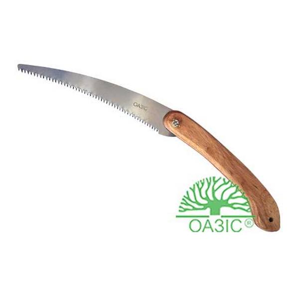 Пила садова, що складається, з дерев'яною рукояткою. Довжина леза 300 мм, довжина рукоятки 280 мм. Пила призначена для легкого зрізу свіжої та сухої деревини, для обрізання гілок товщиною більше 2,5 см. Завдяки гарній формі рукоятки рука не зісковзує при русі на себе. Загартовані, ідеально загострені зуби полегшують роботу. Виготовлено із високоякісної сталі. Перш ніж пиляти гілку, намітьте в потрібному місці жолобок (запил), в який вставте пилку, так ви зменшите ризик вислизання пилки під час роботи. Зберігайте виріб у сухому місці, недоступному для дітей.