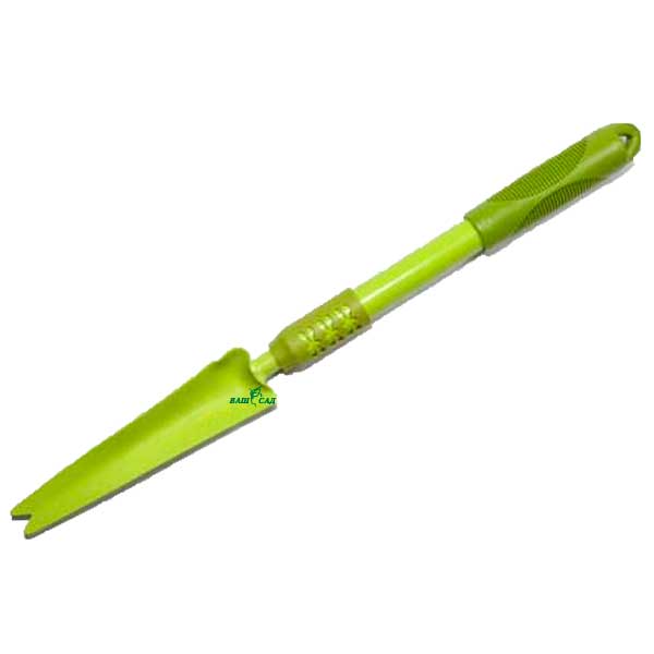Лопатка садова, звужена з подовженою прогумованою рукояткою. Лопатка садова звужена з вуглецевої сталі, подовжена прогумована рукоятка, розмір виробу: 50 х 4,5см.