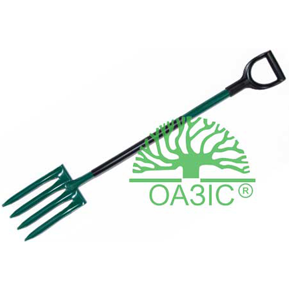 Металеві вила для перекопування землі з чотирма зубами.