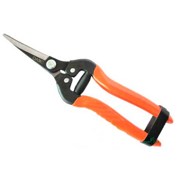 Секатор призначений для роботи з кімнатними та садовими рослинами, а також для пасинкування овочевих культур. Ріжуче полотно складається з вищої якості сталі, що гарантує довгострокове використання ріжучого полотна без додаткового заточування. Рукоятки металеві, обтягнуті спеціальним гумовим матеріалом. За рахунок широкого захоплення між лезами – цим секатором можна перерізати також трав'янисті стебла рослин діаметром до 15 мм. Подовжене полотно секатора та вигин дозволяє легко дістатися до стебла. Рекомендації до використання: зберігати секатор у сухому місці та після застосування змащувати машинним маслом.