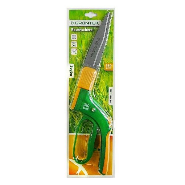 Gruntek Segler - ножиці для вирівнювання країв газону, обрізання листя, стрижки трави. Леза ножиць виготовлені з надійної сталі з тефлоновим покриттям, завдяки чому ножиці рівно ріжуть, а трава та листя до них не чіпляються. Робоча частина має властивість повертатися на 360 °, що дуже полегшує роботу по стрижці під будь-яким кутом. Нижня ручка зроблена у формі "скоби" для надійної фіксації руки. Загальні характеристики: Довжина ріжучої частини – 160 мм. Довжина всього інструменту – 380 мм. Вага – 0.4 кг
