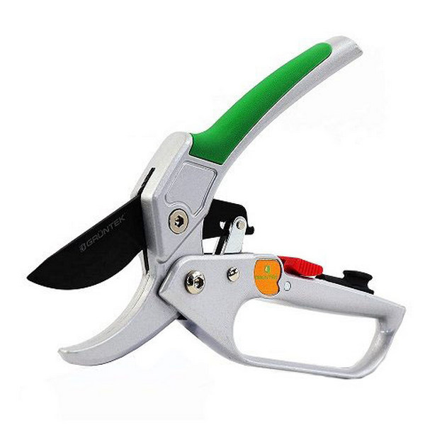 Секатор xраповий Gruntek Kondor дворежимний 20 см. Cекатор призначений для зрізання гілок з кущів, виноградника, дерев, а також для догляду за квітковими клумбами. Леза виготовлені з високовуглецевої сталі SK5, а для швидкої та якісної роботи верхнє лезо покрите шаром від налипання. Завдяки наковаленке секатором можна обробляти міцні гілки. 2-х режимний храповий механізм з автоматичним перемиканням дозволяє різати як дрібні гілки, так і сухі товсті гілки з меншим зусиллям. Рукоятки із алюмінієвого сплаву з м'якою накладкою забезпечують комфортну роботу з секатором. Одна з ручок D-подібної форми для зручного захоплення інструменту. Підходить для роботи і правою, і лівою рукою. Особливості: Призначений для обрізання молодих пагонів, сирих та сухих гілок кущів та дерев. Автоматичний храповий механізм дозволяє різати більш тверді, товсті та сухі гілки з меншим зусиллям. Призначений як лівої, так правої рук. Ергономічні ручки з покриттям із ПВХ-надійно фіксуються в руці і не ковзають. Ручки з алюмінієвого сплаву роблять секатор легким та надійним. Оригінальна конструкція ручки у формі скоби захищає руки під час роботи, забезпечуючи безпеку користувачеві.