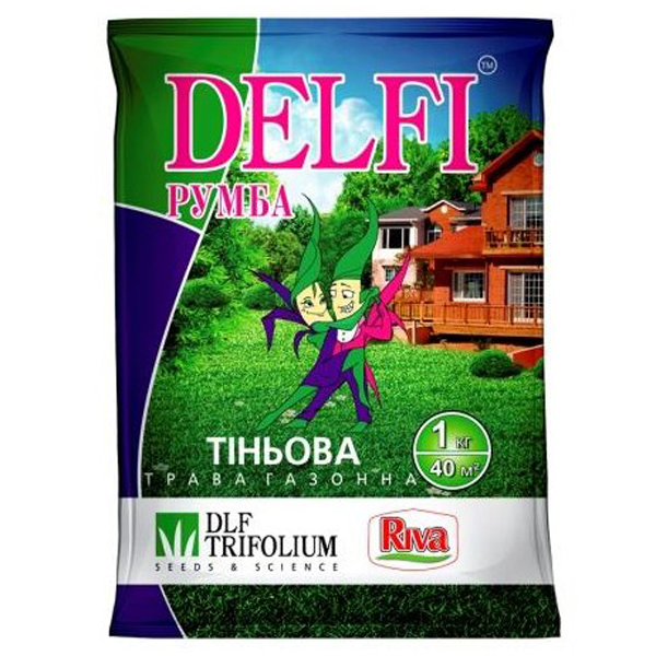 Тіньова травосумішка Delfi Румба - характеризується швидкою подібністю, укоріненням навіть на ущільнених ґрунтах та винятковою стійкістю до витоптування та хвороб. До складу входять тонколисті трави, які добре ростуть в затінених умовах домашніх садів і парків. Призначення: для створення газонів у парках, скверах, садах. Норма висіву – 30-35 г/м2