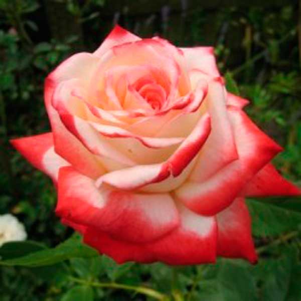 Аромат: середній. Колір: білий з червоною облямівкою. Висота: 100-120 см. Бутони Imperatrice Farah, що розкриваються, надзвичайно елегантні. Краї пелюсток блідо-малинові, пелюстки закручені в класичний бутон, так що назовні відгинаються лише пофарбовані кінчики. Спочатку вони виглядають переважно малиновими, але в міру розпускання квітки стають швидше білими. Контраст між білими пелюстками та їх малиновими краями виглядає красиво на всіх стадіях розпуску квітки. Квітки великі, з довгими пелюстками, зазвичай з'являються по одному, зрідка в кистях до 5 шт, на довгих пагонах, чудово підходять для зрізання. Листя велика, блискуча, стійка до чорної плямистості, кущ сильнорослий, прямостоячий.