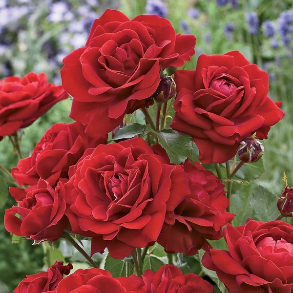 Аромат: сильний Цвітіння: двічі на сезон Колір: червоний Висота: 60-80 см Розмір квітки: 6-8 см Стійкість до борошнистої роси: сильна Стійкість до чорної плямистості: сильна Заслужено цінується за свою зимостійкість і стійкість до хвороб. Яскраві, темно-червоні квітки, що не вигорають на сонці, з'являються в кистях по 3–5 штук, хоча трапляються іноді й букети до 30! Стійкі до дощу та сильних вітрів. Цвітіння безперервне до перших морозів. Кущ великий, гіллястий, із великими шипами. Ідеально підходить для масових посадок: уся рослина цвіте на одній висоті.