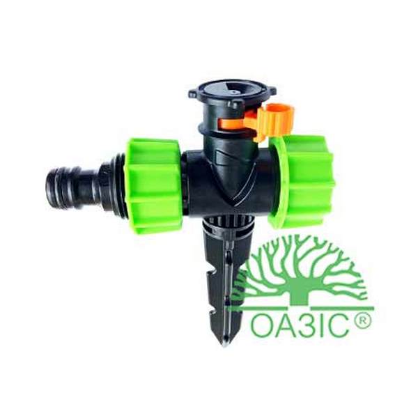 Переваги розпилювача: послідовне з'єднання розпилювачів через один кран та один шланг, радіус поливу 180 градусів (півколо), чим більший тиск води, тим дальність поливу збільшується, при тиску 1,5-2 атм радіус поливу 3 метри, висота поливу 0,5 метри. Застосовується для поливу газонної трави, томатів, огірків та інших овочів.