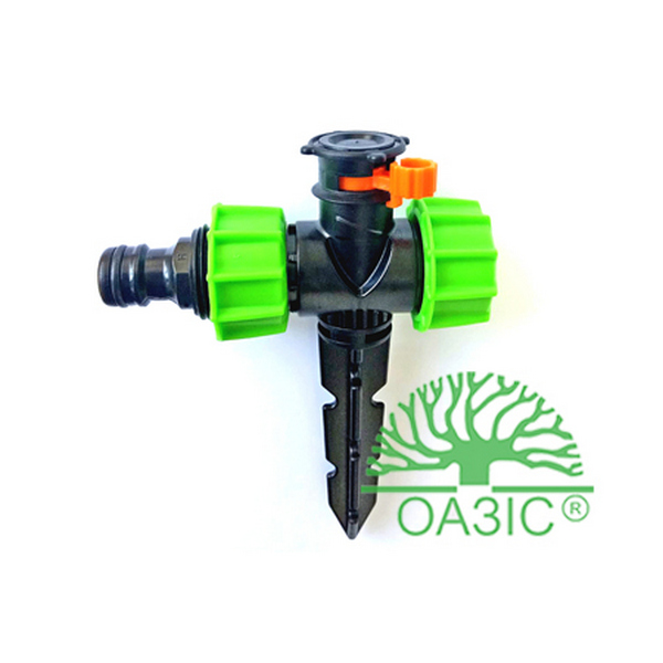 Переваги розпилювача: послідовне з'єднання розпилювачів через один кран та один шланг, радіус поливу 360 градусів (коло), що більший тиск води, то дальність поливу збільшується, при тиску 1,5-2 атм радіус поливу 3 метри, висота поливу 0,5 метри. Застосовується для поливу газонної трави, томатів, огірків та інших овочів.