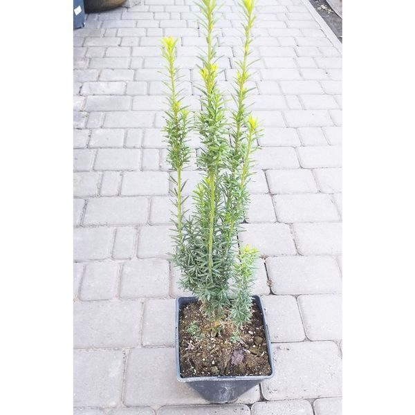 Вічнозелений строго вертикальний великий чагарник із стрункою, щільною, колоновідною кроною і дуже густорозташованими, мало розгалуженими, з великою кількістю коротких пагонів, гілками. Висота 4-5 м, ширина 0,8-1 м. Хвоя голчаста, розташована радіально, широка, вигнута вниз, яскраво-зелена. Віддає перевагу свіжим або вологі, багаті на поживні речовини, вапняні ґрунти, хоча в цілому невимогливий і добре росте навіть на помірно сухих, бідних, слабокислих ґрунтах, погано переносить сильно кислі ґрунти. Виносить кореневий тиск інших рослин, міський клімат. Вітростійкий.